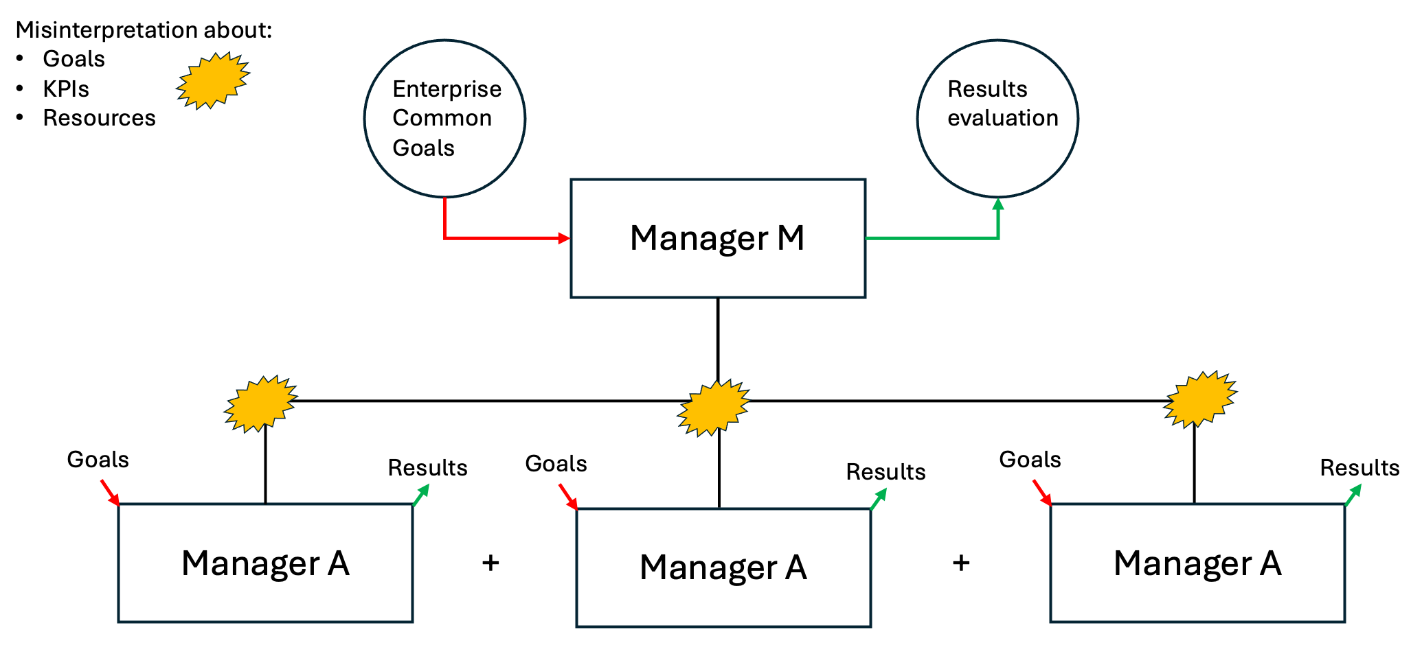 Accordingly to studies there could be misinterpretation about the very nature of the goals, the key performace indicators, resources in play to achieve the expected results.